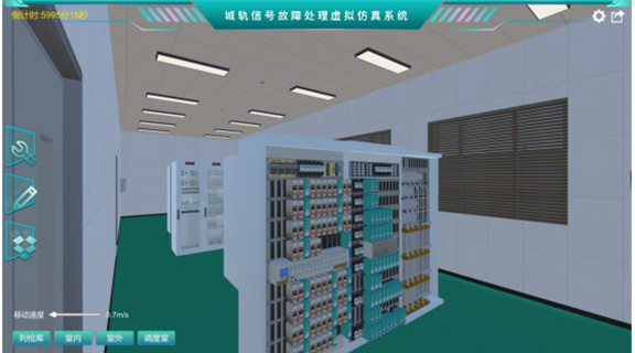 技能操作競(jìng)賽考核信號(hào)故障分析與處理、信號(hào)設(shè)備安裝與調(diào)試、信號(hào)設(shè)備維護(hù)3個(gè)項(xiàng)目。友道科技研發(fā)的城軌信號(hào)設(shè)備虛擬仿真培訓(xùn)考核系統(tǒng)是通過(guò)3D仿真技術(shù)1:1還原了城軌信號(hào)設(shè)備,系統(tǒng)中搭建了四個(gè)場(chǎng)景:信號(hào)控制室、室外站場(chǎng)、車(chē)庫(kù)及調(diào)度中心,其中包含轉(zhuǎn)轍機(jī)、信號(hào)機(jī)、計(jì)軸、50HZ相敏軌道電路、車(chē)載、ATS等設(shè)備檢修。城軌信號(hào)實(shí)訓(xùn)平臺(tái)由ZDJ9轉(zhuǎn)轍機(jī),組合柜、電源轉(zhuǎn)換模塊、信號(hào)組合層自動(dòng)導(dǎo)通系統(tǒng)組成。通過(guò)平臺(tái)的實(shí)訓(xùn),使城市軌道交通信號(hào)專(zhuān)業(yè)學(xué)員了解并掌握轉(zhuǎn)轍機(jī)系統(tǒng)原理。